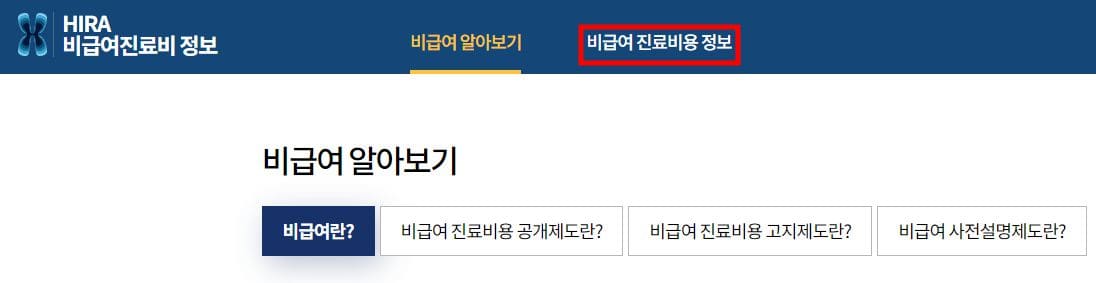 ② 화면 가운데 비급여 진료비 정보 클릭