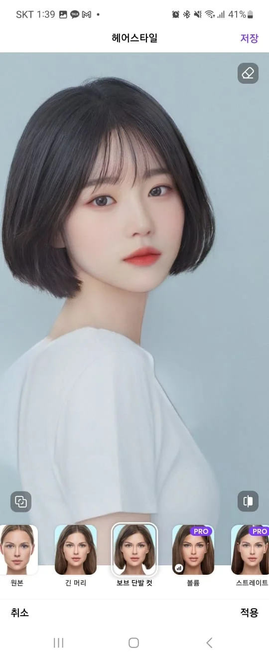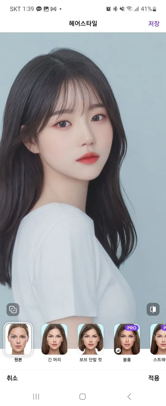 ✔️ 헤어스타일 : 긴 생머리, 단발머리를 무료 편집 가능합니다. 긴 생머리가 아주 맘에 들게 잘 나오는 거 같습니다.